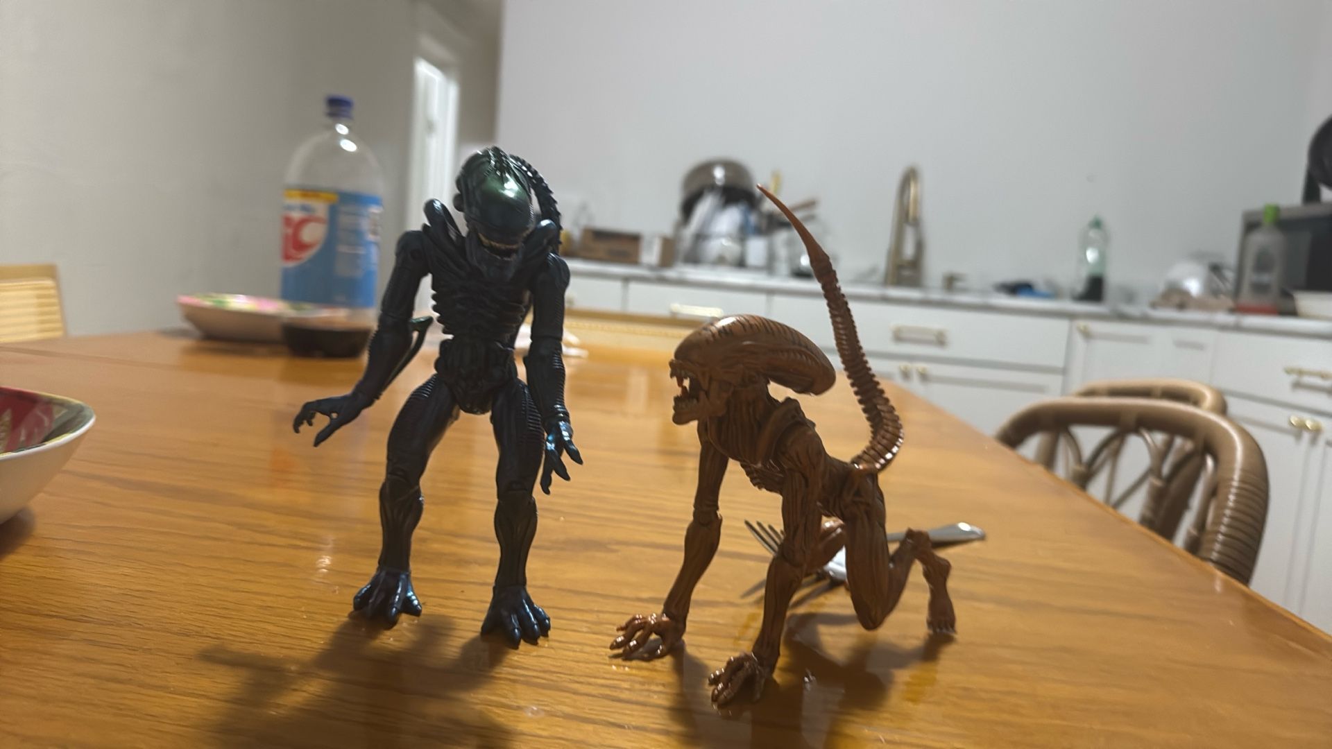 Leg of blue alien kind of flimsy but overall it’s actually in pretty good condition and the orange one. It’s over in pretty condition too. It just has a sharpie mark on his head, but I promise it’s really small.