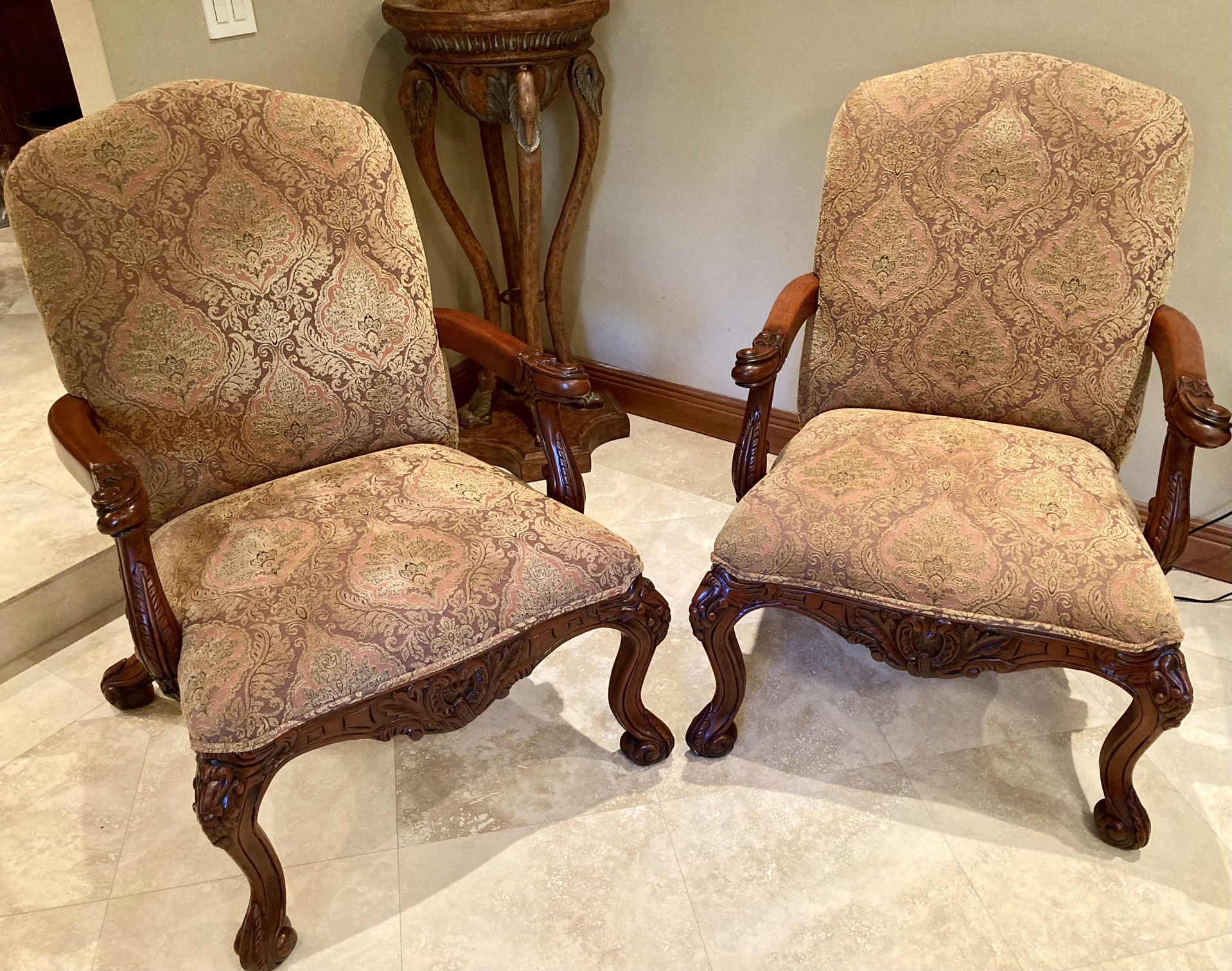 ✨ DESCRIPTION & FEAUTURES "Benetti's Italia fine furniture collection, your premier Italian design furniture. Our collection of luxury sofas, couches, sectionals and chairs ✨ROMA SET OF TWO OPULENT ACCENT CHAIRS IN TRADITIONAL STYLE (2 pcs) Traditional style • Deep, wide seating Scroll legs • High Quality Materials • Hand carved ✨ Measurements 30" Wx 32" D ×43' H 77 cm Wx82 cm D x 110 cm H ✨Materials Damask Pattern Original Price $3500 Now 🚨$2500 plus $1000 Off Final Price ✨🤩$1500