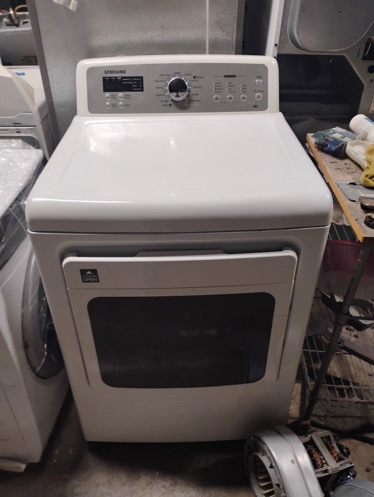 For sale is a refurbished Samsung electric dryer. Has many cycles/options including steam cycles with super capacity. Comes with warranty, delivery available!!!