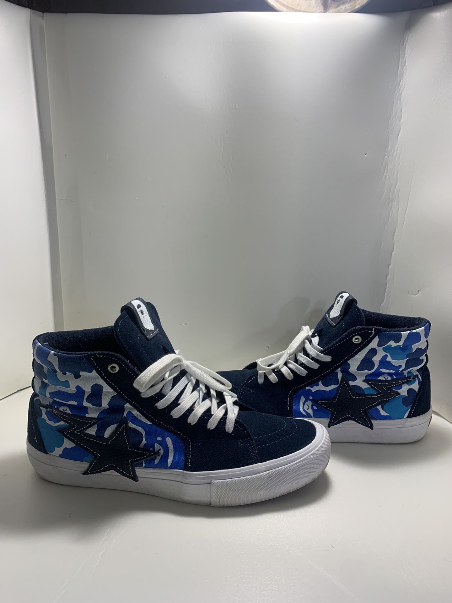 Vans bathing ape custom paint and leather shooting star and tongue tag stitched on lightly used