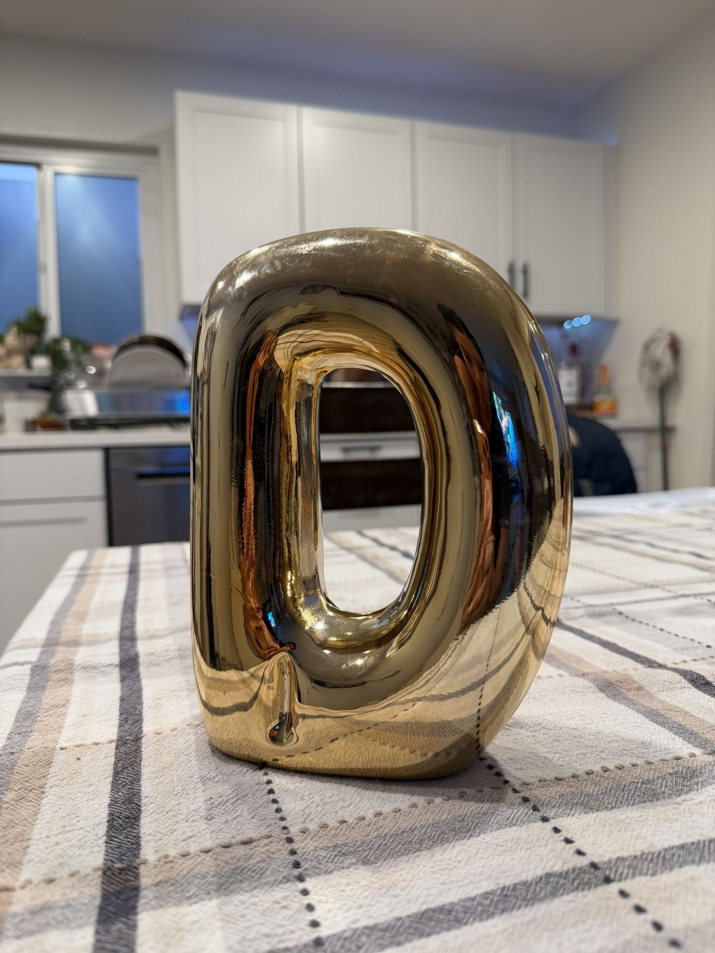 Decorative gold letter “D” with a glossy metallic finish. Great for shelf styling, initials, office decor, or gallery walls. Good condition with light surface wear (see photos). Stands on its own. Pickup preferred. Message me if interested!