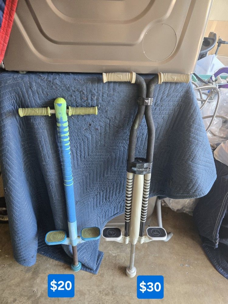 Two Pogo sticks in good condition. Large Pogo stick - $5 Medium Pogo stick - $5 Pick up only