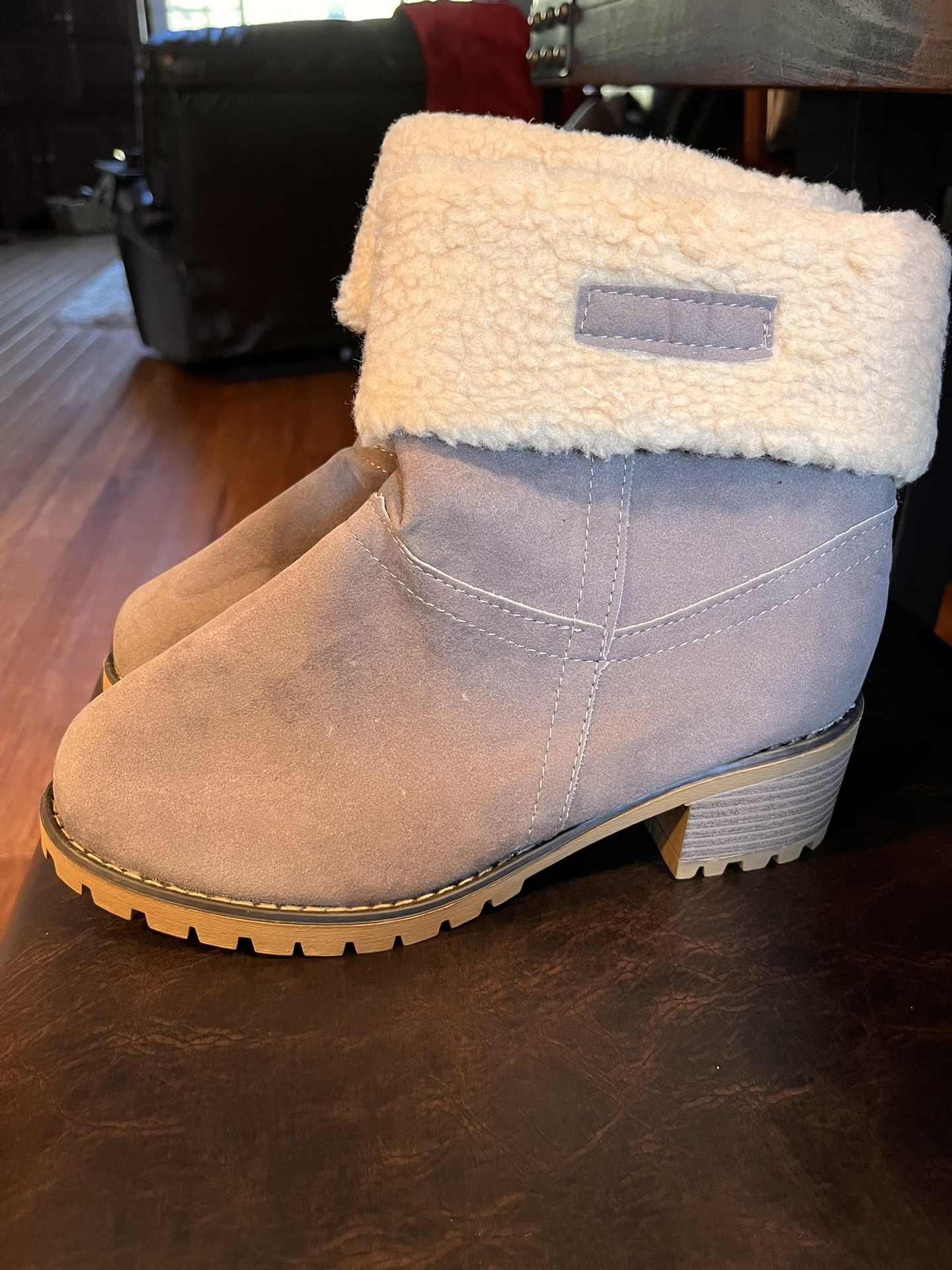 Brand-new stone gray size 7.5 block heel ankle boots