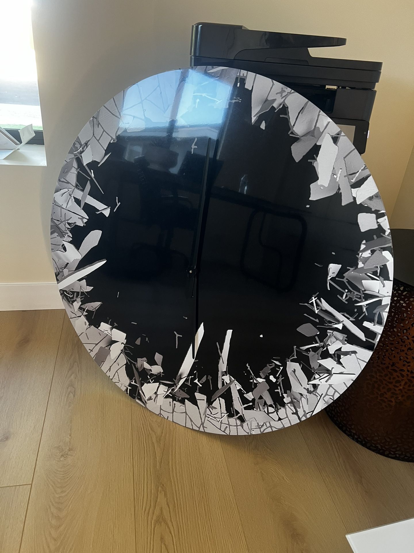 3D Modern And Contemporary round wall clock is made on 100% solid aluminum. It has a highly reflective glossy finish creating a sleek modern look.