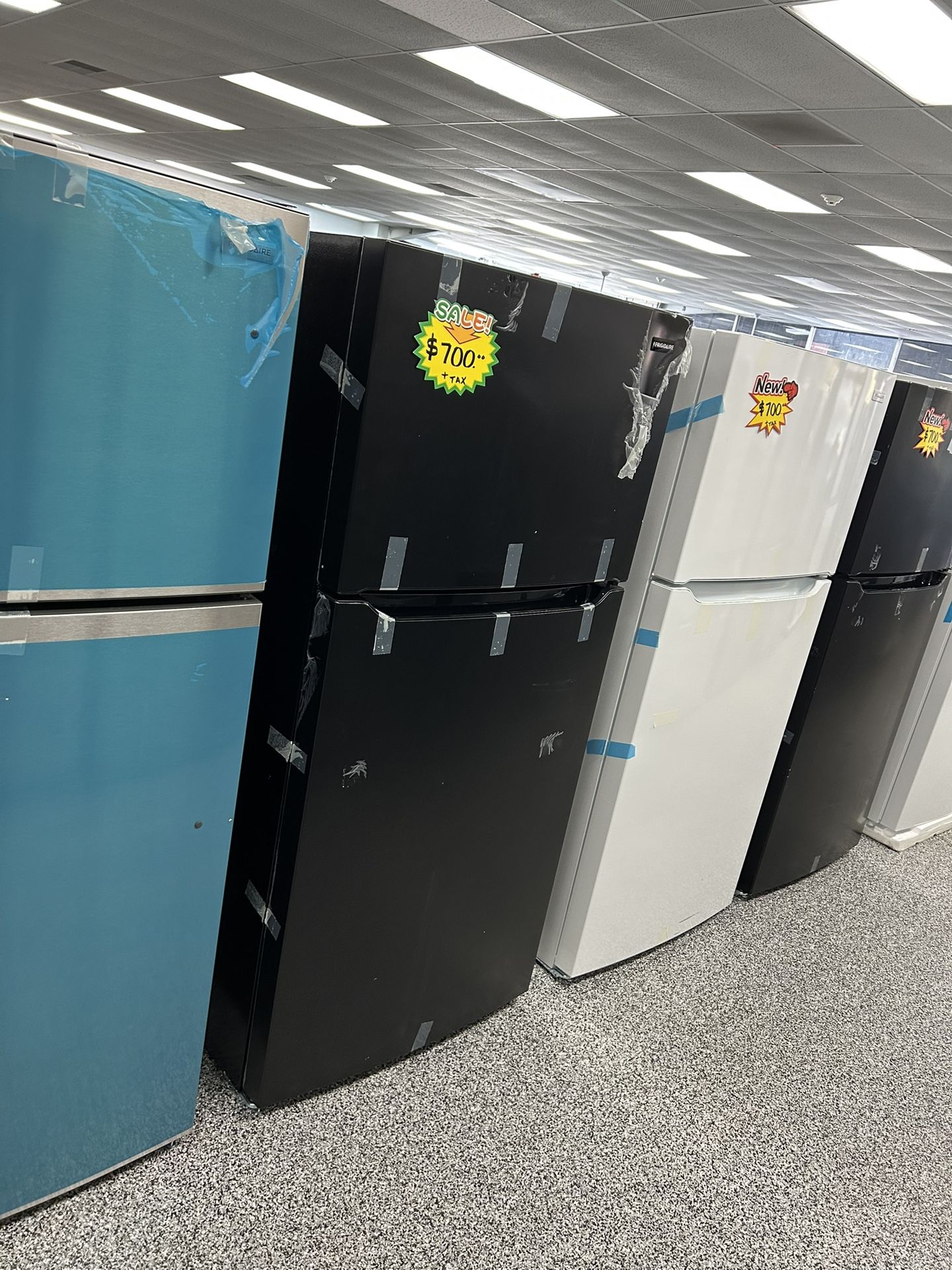 FRIGIDAIRE TOP FREEZER REFRIGERATOR STAINLESS STEEL!!! WHITE AND BLACK COLOR BRAND NEW!!!!