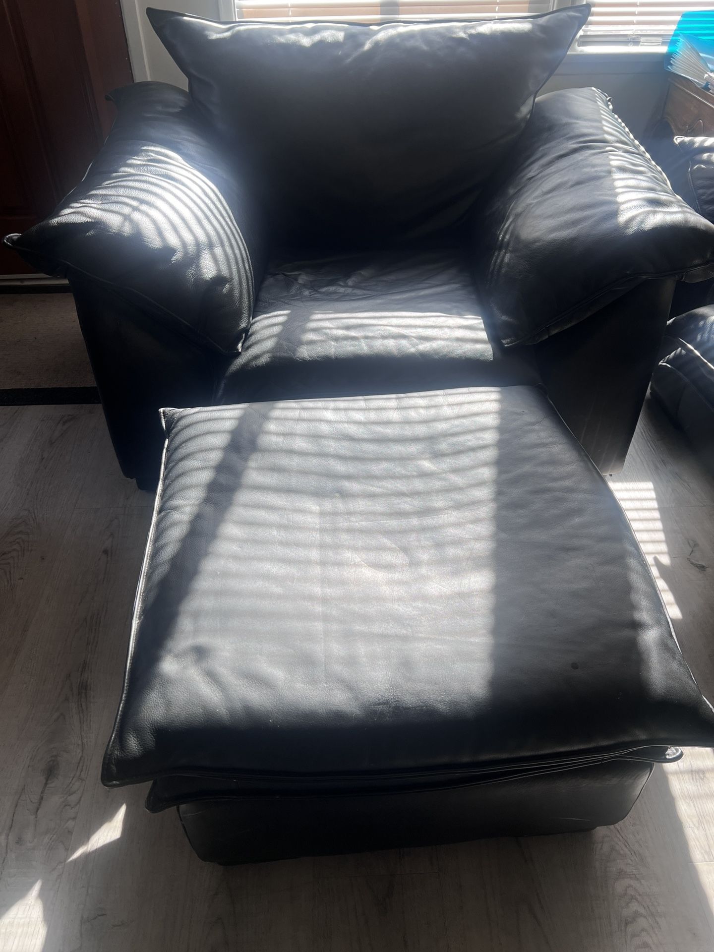 Black Leather Chair & Matching Ottoman