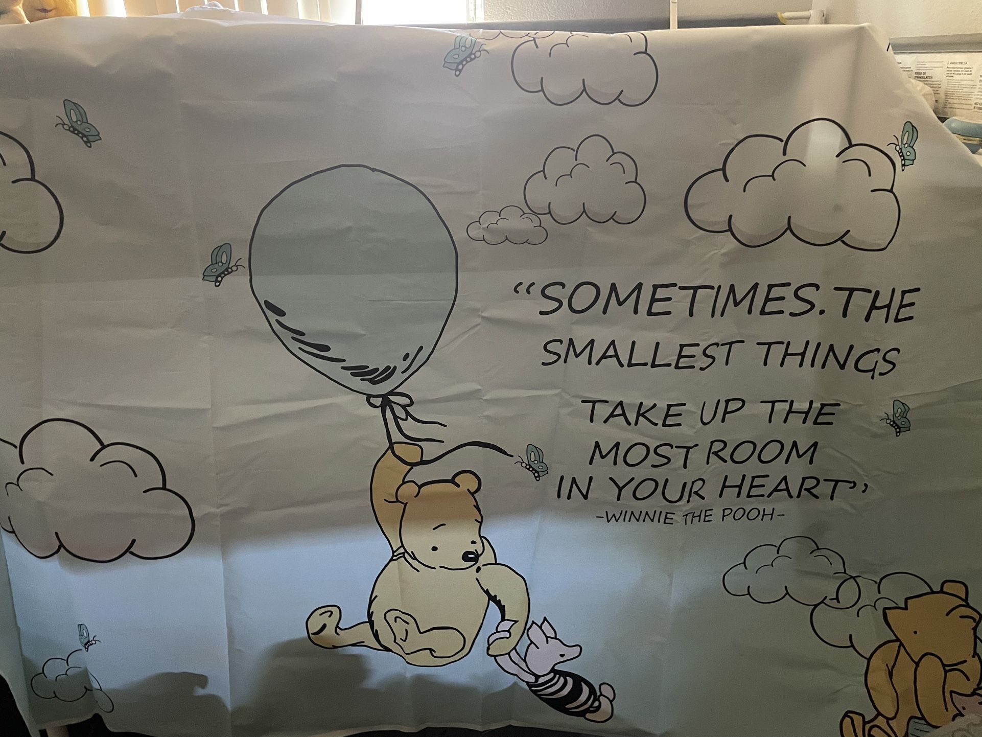 Winnie the Pooh backdrop, used once for a small baby shower. $10
