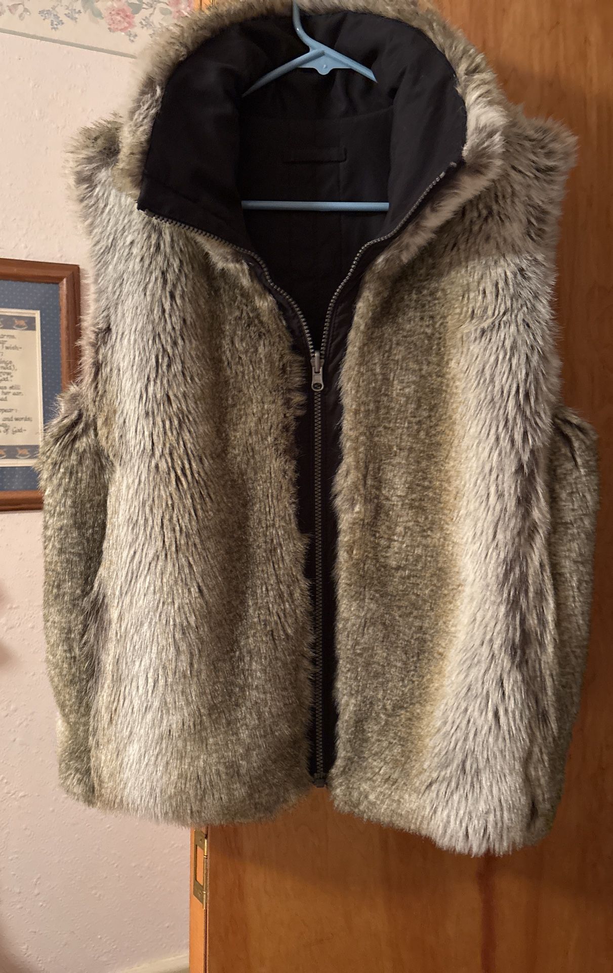 Reversible vest Fur/black, super soft faux fur. Great condition, no rips, tears, stains, or funny smells. Pick up only