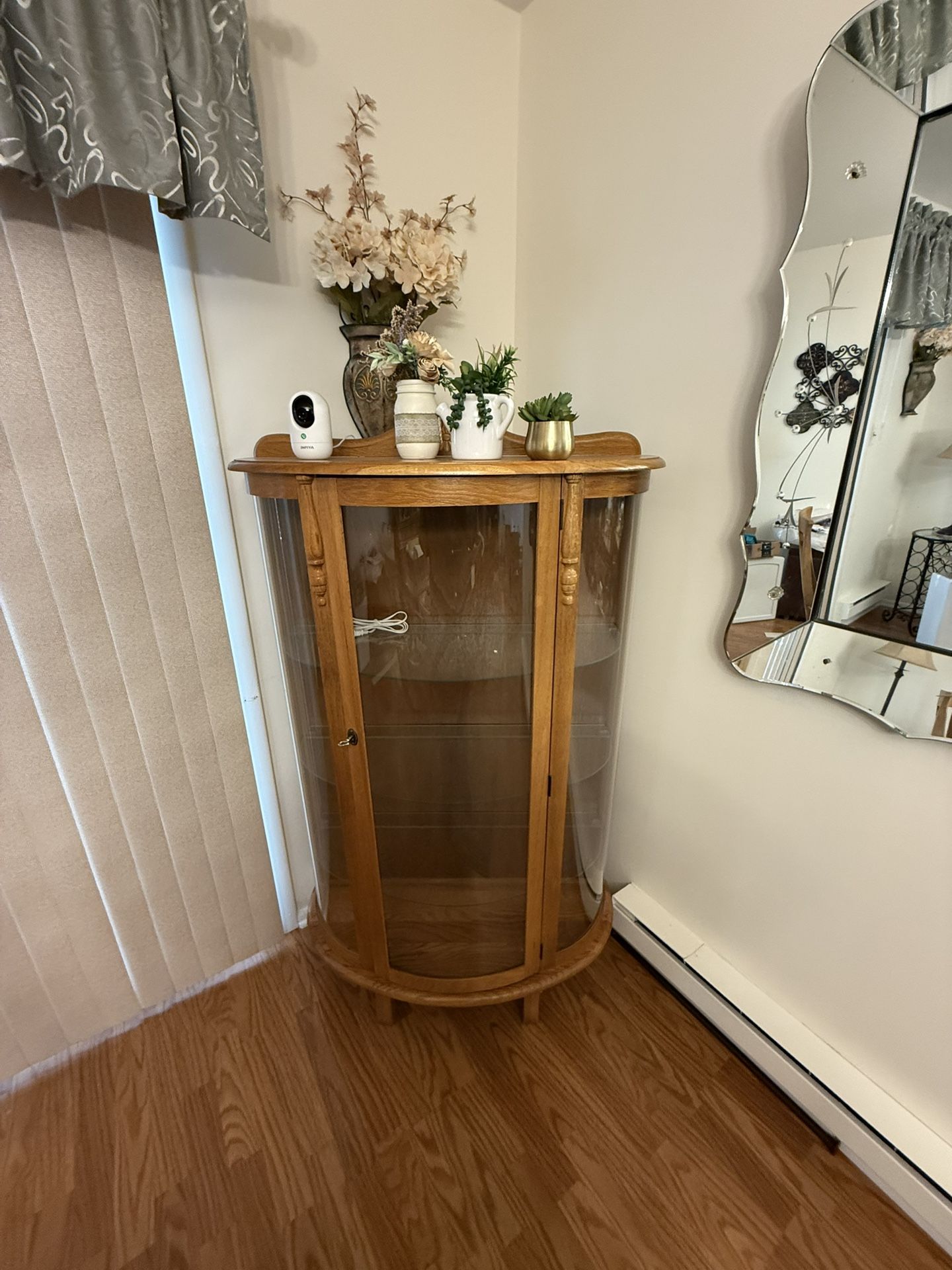 Nice curio with 3 shelves very good condition 53H. X 40W