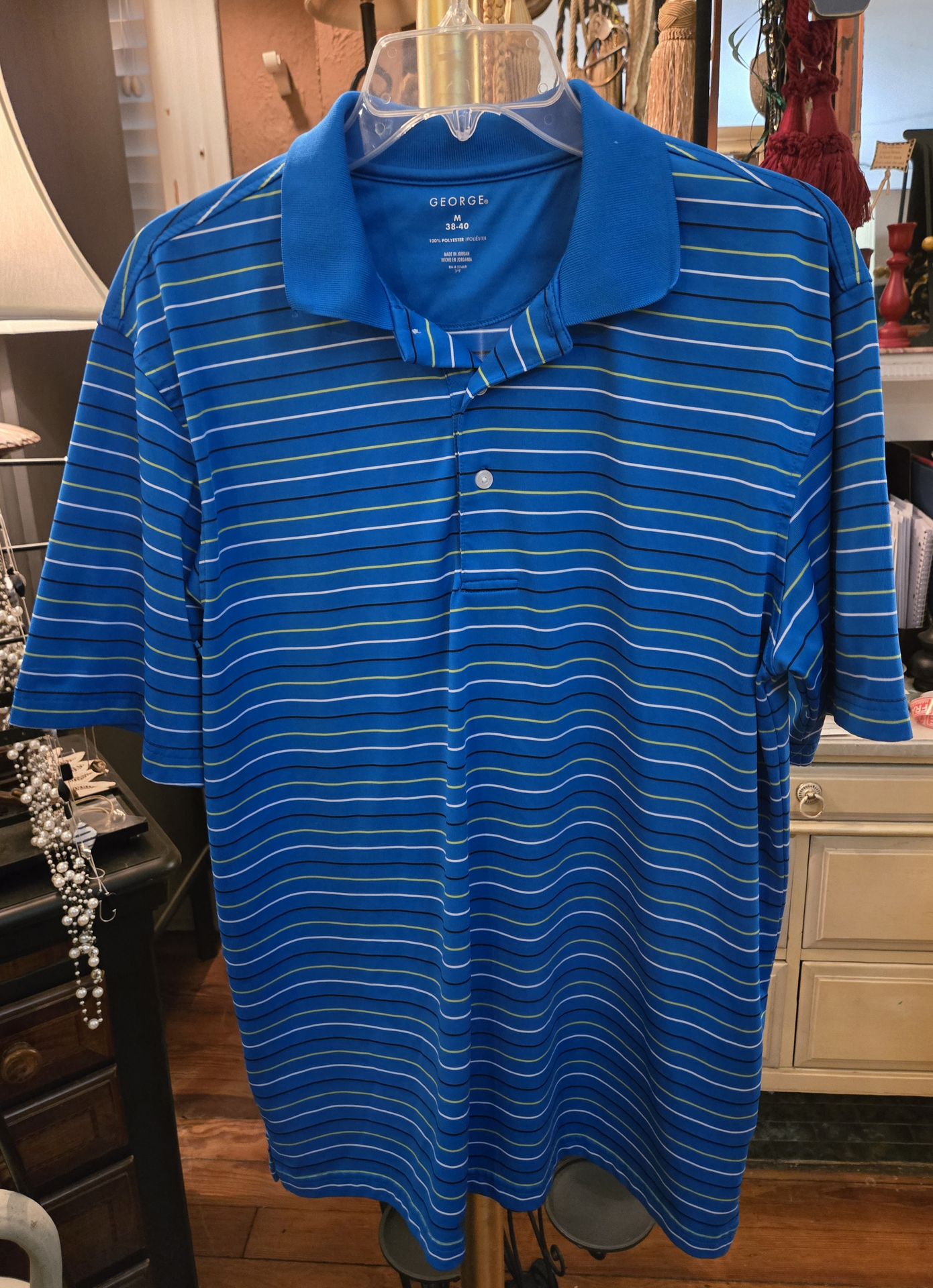 Striped, pull over one 100% polyester polo shirt size medium. Like new...with nice colors. Pickup in south county near Bayless and Lemay Ferry Rd or shipping available Porch pickup available with prior venmo, PayPal payment or by set timed appt. Online resale