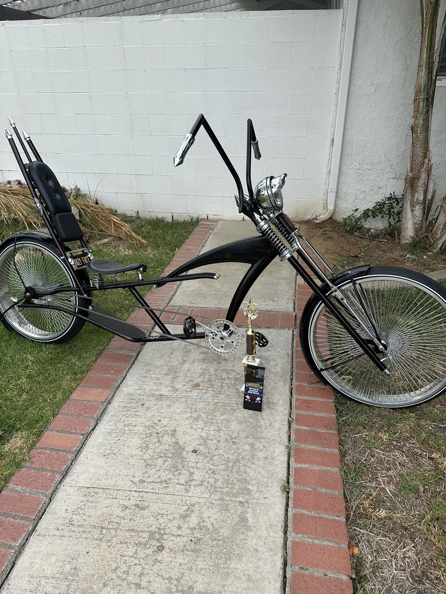 Custom one of a kind. Brand new build. Stretched Micargi puma custom built frame. forks, handlebars, sissy bar. Custom paint looks black at night but in the sun looks like blood in the paint.. Frame, forks, handlebars with seat only. $300 firm