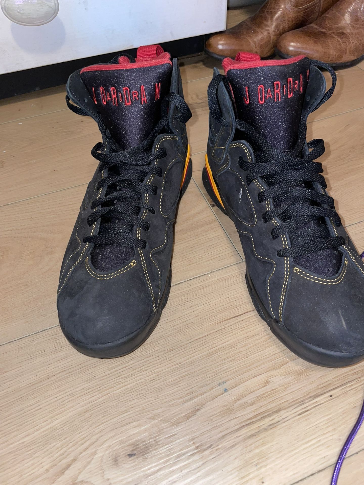 No box. The Size 8 Jordan 7 Retro Citrus is a stylish and classic sneaker from the Air Jordan product line. Featuring a mid-top shoe shaft style and a retro theme, this athletic shoe is perfect for men who appreciate both comfort and style asking $75 OBO
