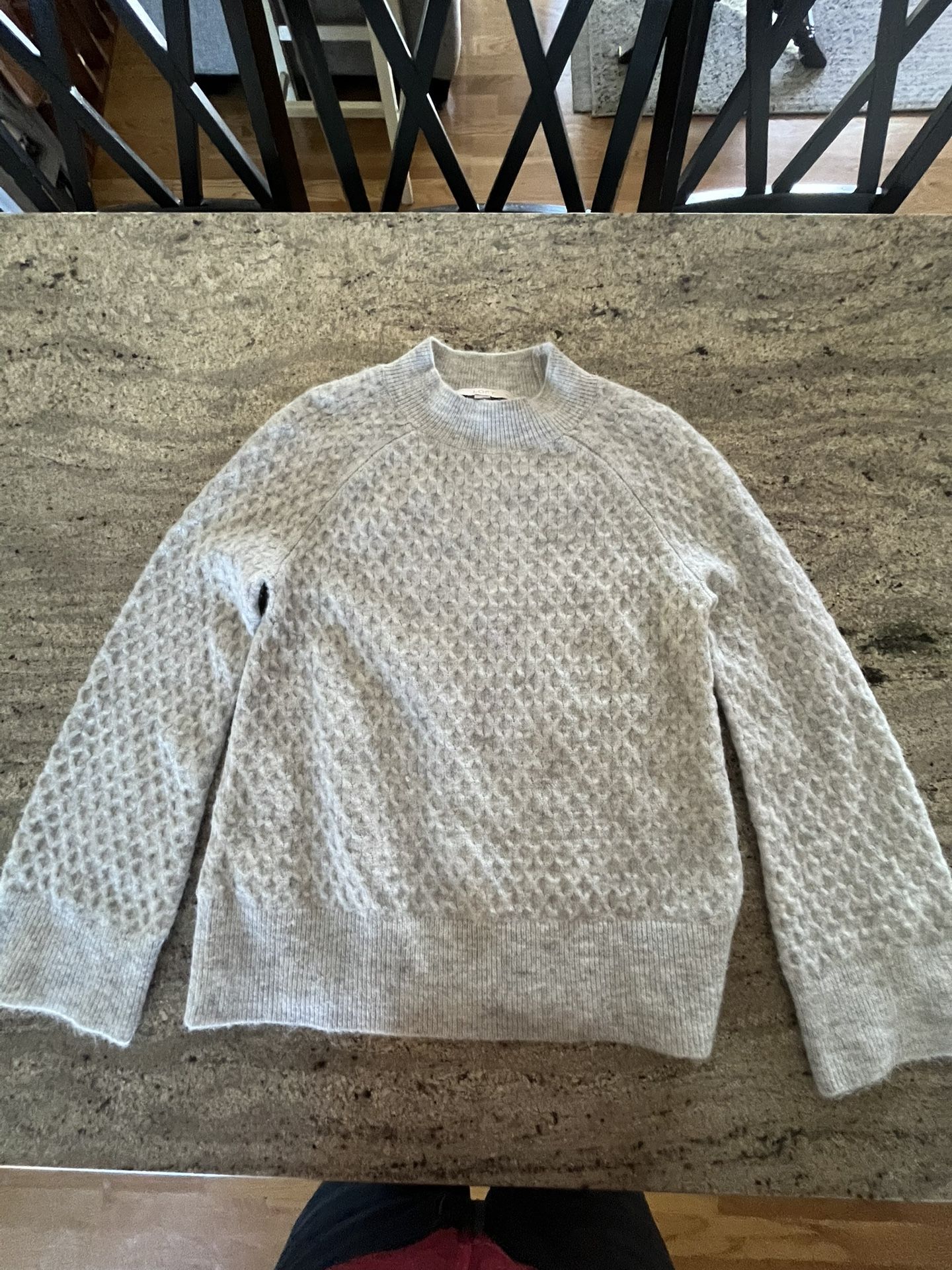 LOFT Womens Gray Textured Knit Soft Mock Neck Raglan Long Sleeve Sweater- Small Petites