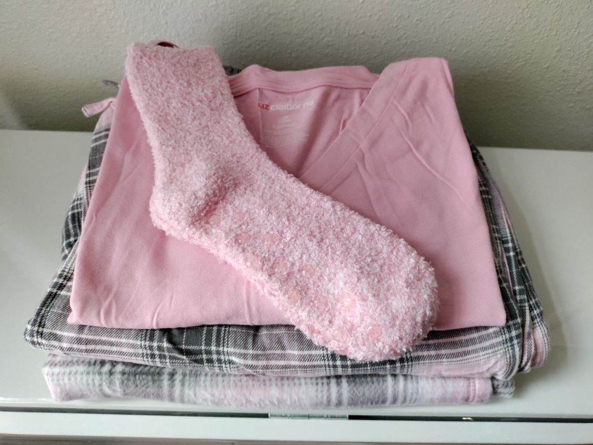 4 pieces - Cozy Socks - Shirt - Pant - Blanket New. Pick up in Fontana