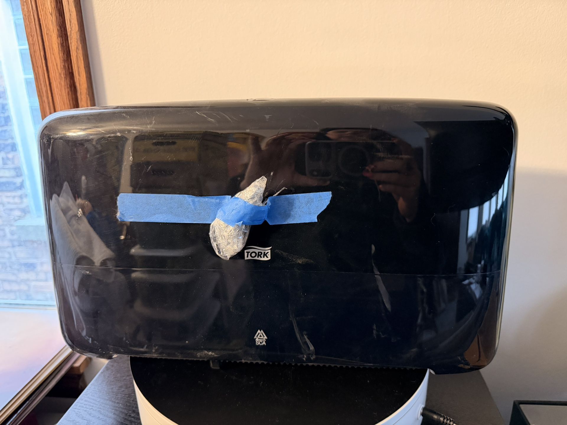 Tork Elevation Twin Mini Jumbo Toilet Paper Roll Dispenser (model (contact info removed)) Used, but in good working condition with keys included. High Capacity: It holds two jumbo rolls simultaneously to reduce refill frequency and prevent run-outs. Waste Reduction: The dispenser features an optimal roll brake that prevents free-spinning, minimizing paper consumption. Convenience: It includes a see-through window to easily check paper levels without opening the unit. Security: The dispenser is equipped with a lock to protect against theft or tampering.