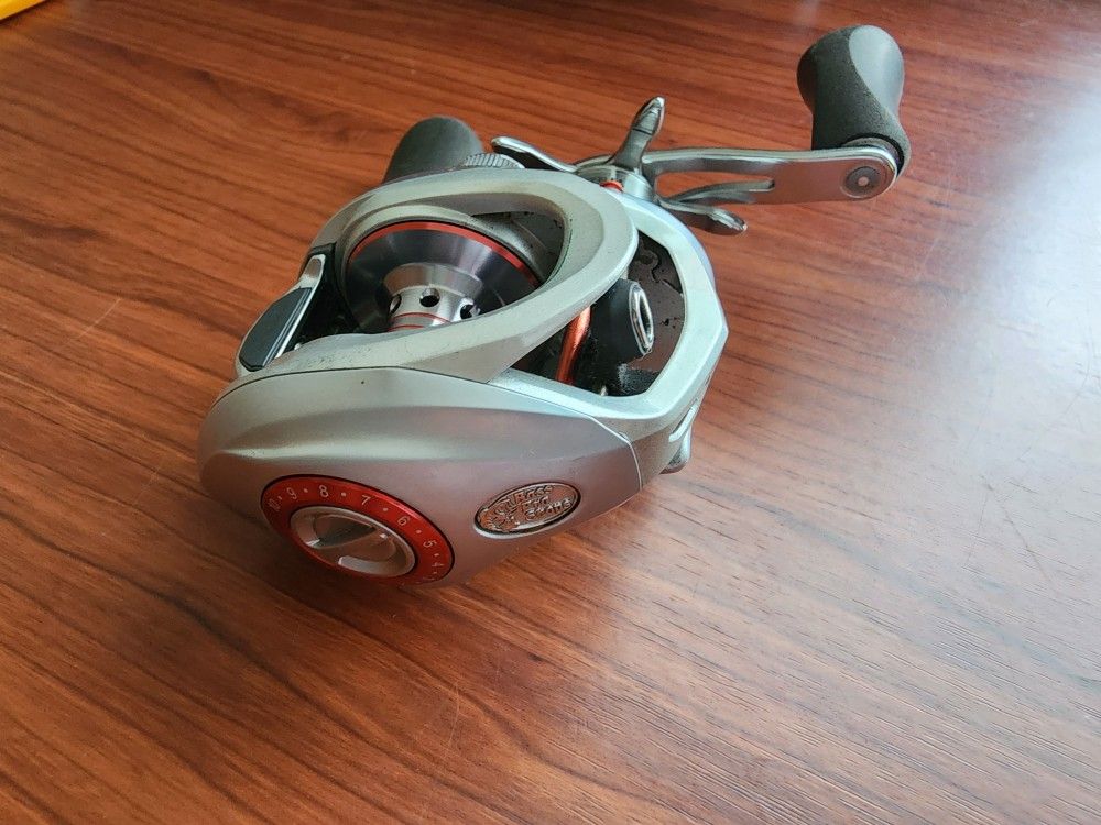 Bass Pro Shops Johnny Morris Platinum Signature Baitcasting Reel. In good condition. Left hand retrieve, 6.8:1 gear ratio.