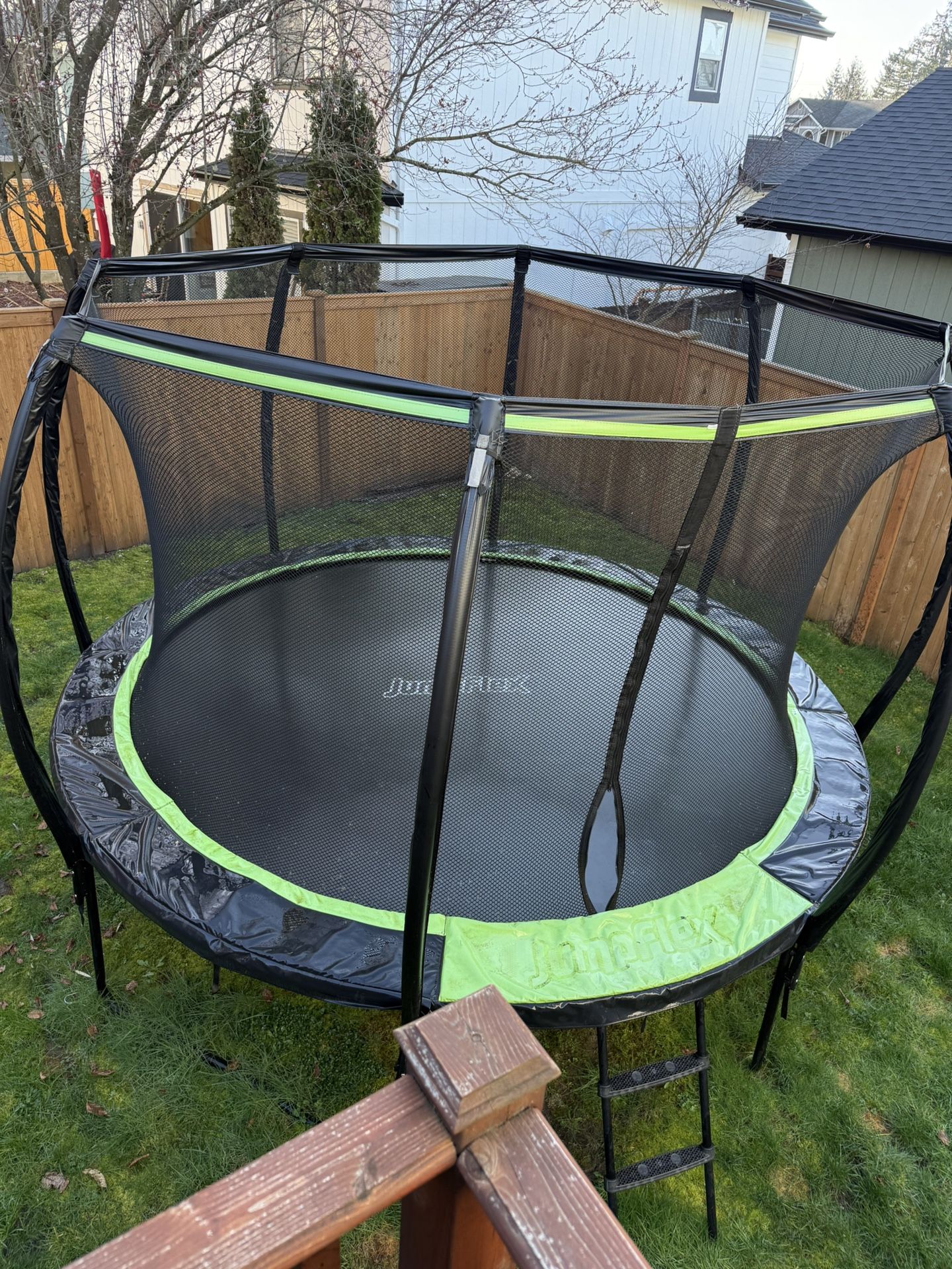 We are selling our Jumpflex FLEX 12ft outdoor trampoline. It’s in great condition and ready for a new family to enjoy! Features: • 12 ft diameter (perfect size for most backyards) • Heavy-duty galvanized steel frame • High safety enclosure net • Soft safety padding • Includes ladder • Total Weight capacity 330 lbs • Smooth, strong bounce This is a high-quality trampoline (retails around $800–$900 new). Perfect for kids and family fun, especially with spring and summer coming. No rips, no damage. Clean and well maintained.