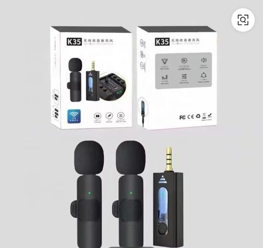 Brand New K35 Pro Wireless Lavalier Microphone, Plug and Play, Black, 3.5mm, 20m Range