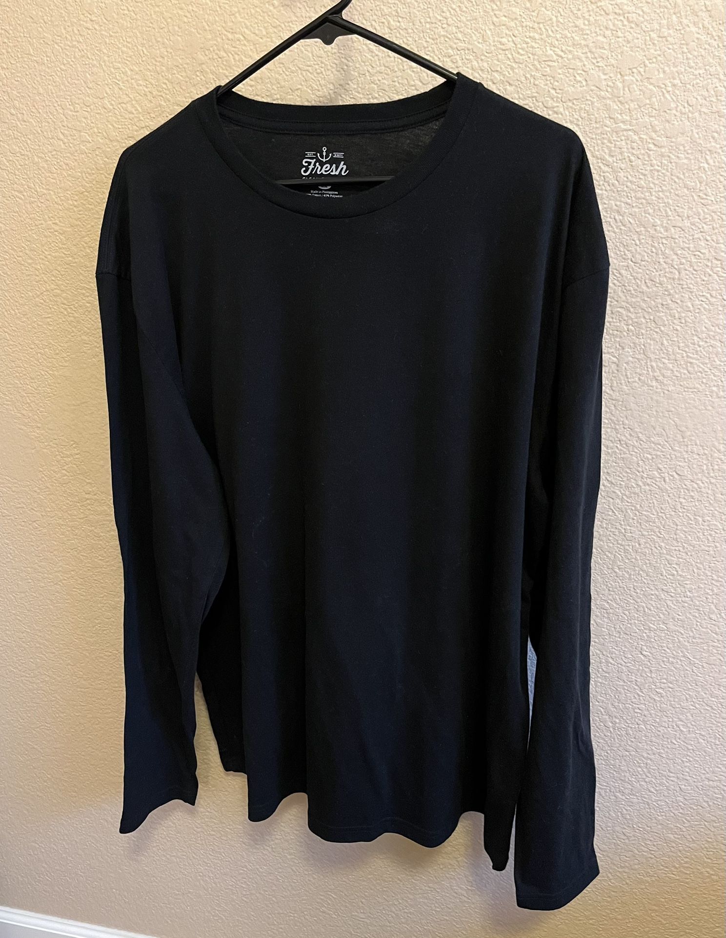 Black long sleeve tee in 2X. 60% cotton, 40% polyester.