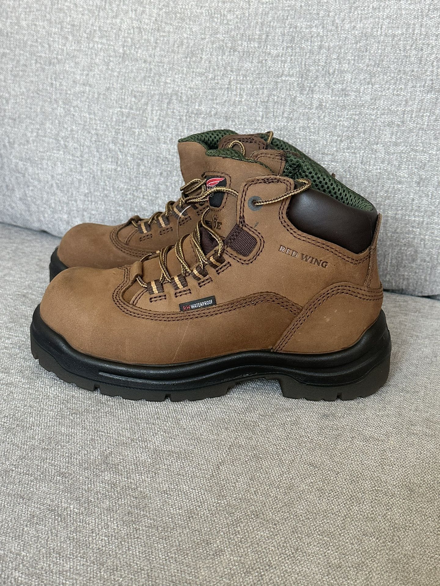 New✨ Size: 6 Retails: $220 Get exceptional comfort, durability and performance from this medium-duty boot with electrical hazard and non-metallic safety toe protection that offers 44% more toe room than standard work boots. The waterproof Red Wing Leather upper and best-in-class oil/gas-, chemical- and abrasion-resistance make this style ideal for almost any light manufacturing, transportation or general utility job.