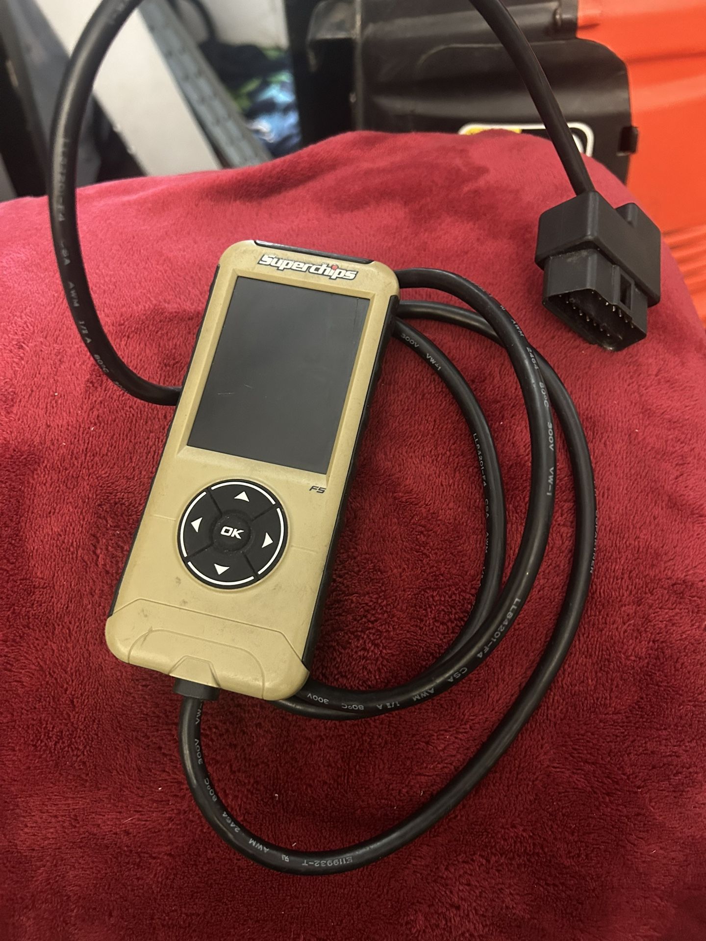 Sold my truck and no longer have use for this. SUPERCHIPS FLASHPAQ F5 IN-CAB TUNER,COMPATIBLE WITH GM GASOLINE & DIESEL ENGINE JEEPS TRUCKS AND SUVS • Speedometer Correction for Gears, Tires & Axle Swaps • Recalibrates for Tire Sizes 26″ – 42″ • Gears & Axles up to 5.38 • 2.8″ High Definition Color Screen • Reads & Clears Diagnostic Trouble Codes • Accessory and TMPS Options • Rubicon 4-Hi & 4-Low Locking Options • Internet Updateable • PC Compatible