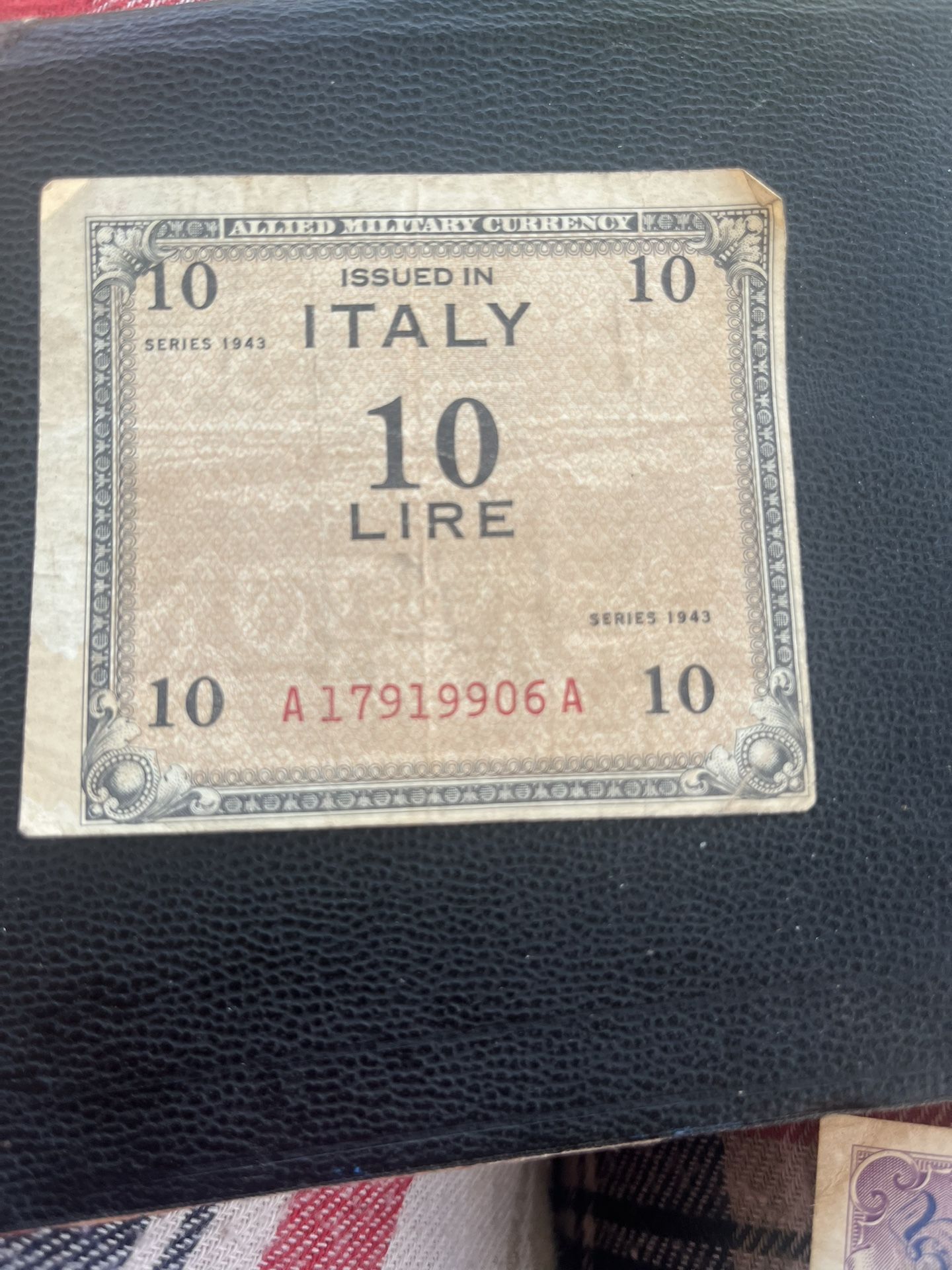 The banknote shown is an Allied Military Currency (AM-lira) for 10 lire, issued in Italy in 1943. Shoot offers !