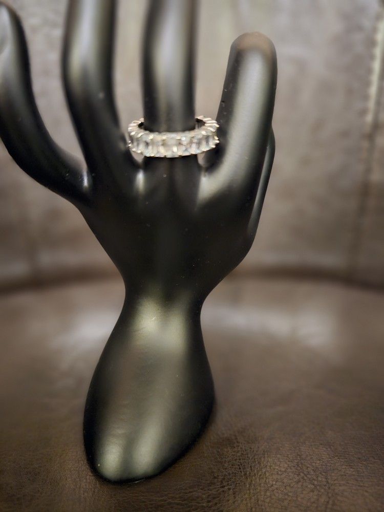 Size 8, Sterling Silver, very solid cubic zirconia accent ring, very beautiful.