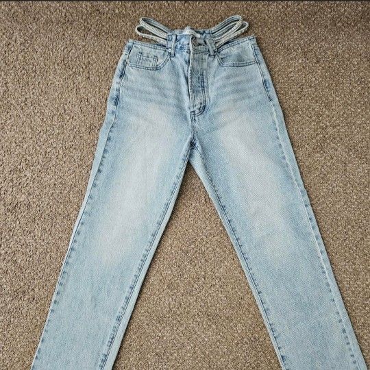 PacSun High Waisted Dad Jeans Rhinestone Straps