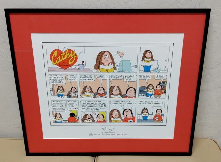 Cathy Guisewite Limited Edition Comic Lithograph 1990s numbered 818/2500. Professionally framed by Aaron Brothers. Some scratches on frame. Frame is 22.75 x 19 x 1. Pick up near Anthem Highlands Henderson area