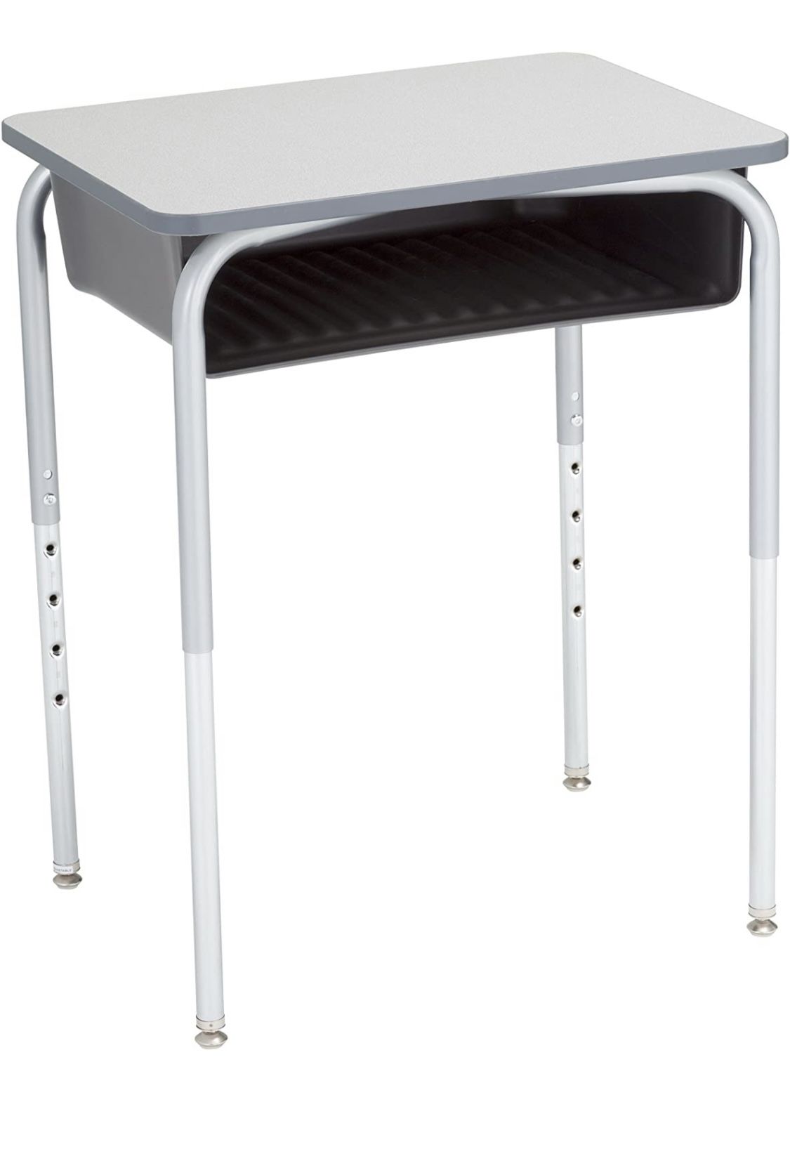 Learniture School Kids, Students, and Classrooms-Adjustable Height Open-Front Desk, Gray Top/Black B