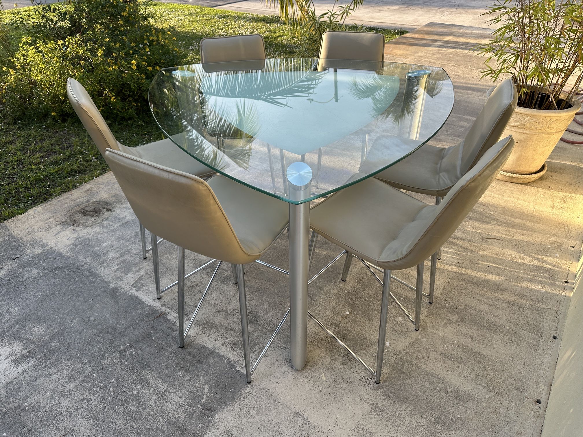 Hand upholstered leather Chairs with not a scratch on them with glass table.