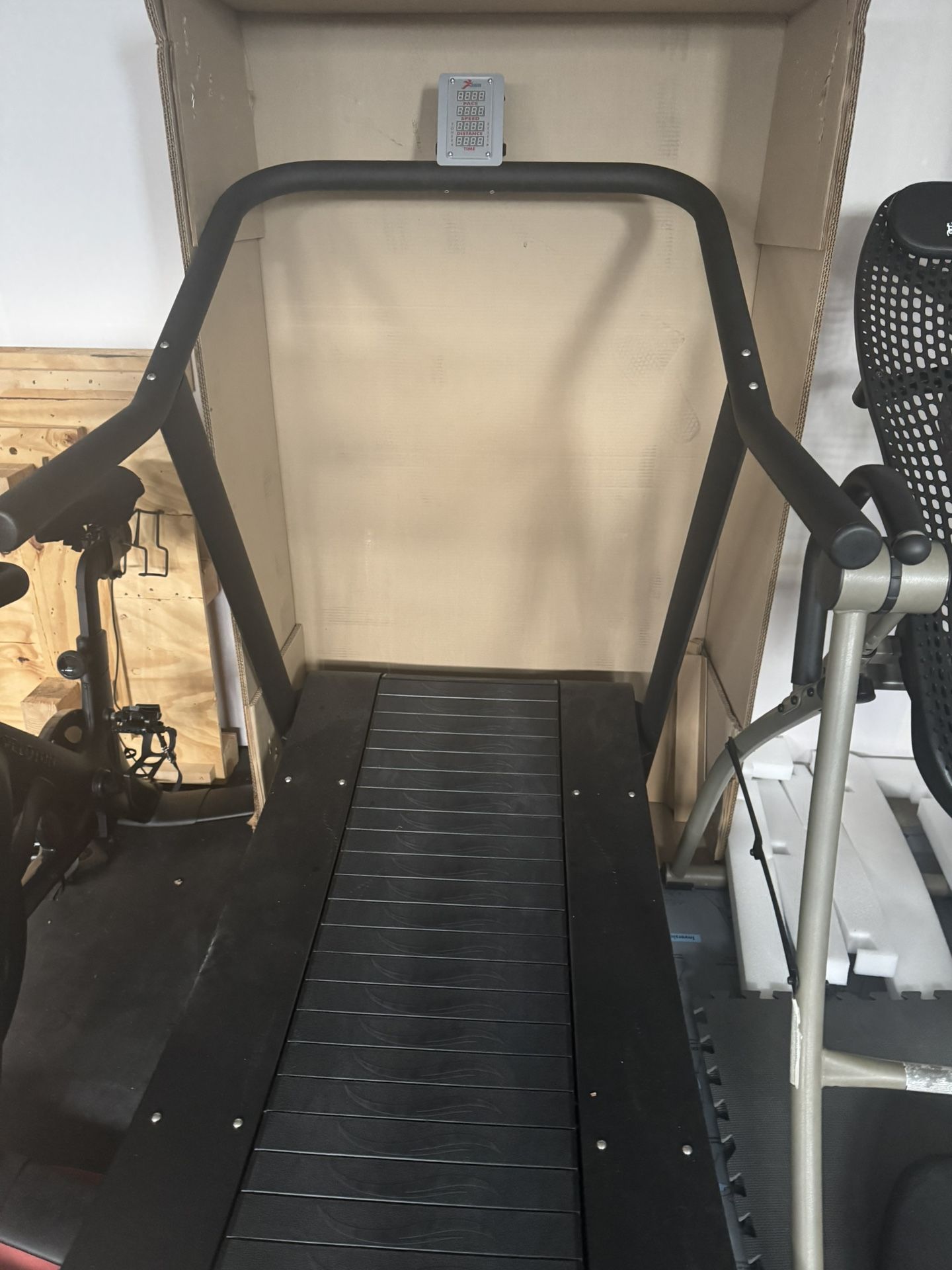 Its new price not used even 5 times, Trueform Runner Excellent Condition! Still clean and new, with every feature operating smoothly. Delivery is available. Lightly used. The simple design of this unique, non-motorized treadmill is also what makes it one of the most effective devices for developing proper running technique. Unlike standard electric treadmills, the TrueForm Runner from Samsara Fitness features an innovative curved deck that is controlled 100% by the movements and force of the athlete using it. There are no on/off switches or complex buttons and settings to worry about. It's a manually operated treadmill that helps train and reward technically-sound posture, balance, and cadence. Set your own limits or push right past them. The TrueForm Runner can handle even the most advanced and intense training regimens, creating the nearest simulation of genuine road running. Height: 57" Width: 36" Running Surface: 54" x 17" Weight: 325LB Official link: https://offerup.co/faYXKzQFnY?$deeplink_path=/redirect/