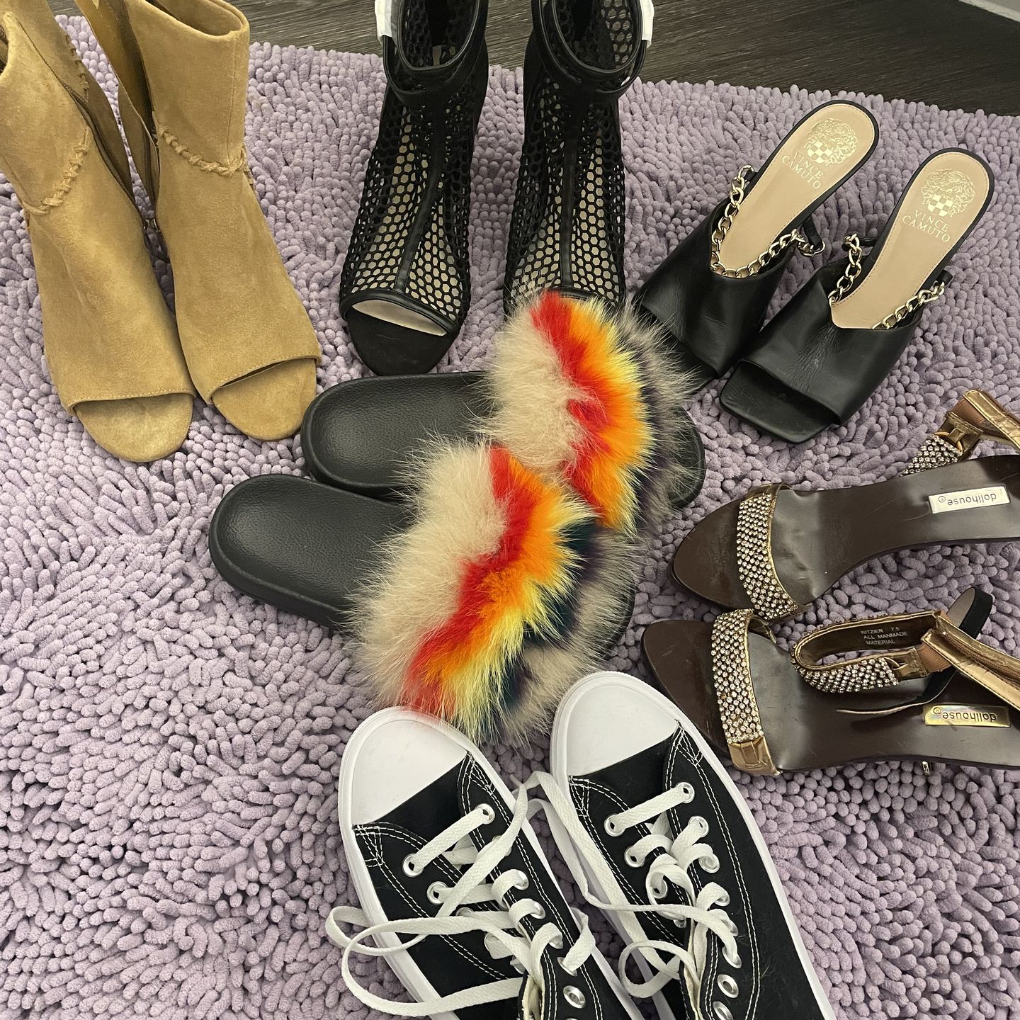 New never worn….No boxes Name Brands size 8 Dollhouse gold & copper rhinestones hills 7.5 women’s Chuck Taylor high tops and thicker bottom soles Slipper sandals lite as a feather beautiful furry! I only take cash in hand or Zelle me FIRM ON PRICE Text to my direct line via offer up hills