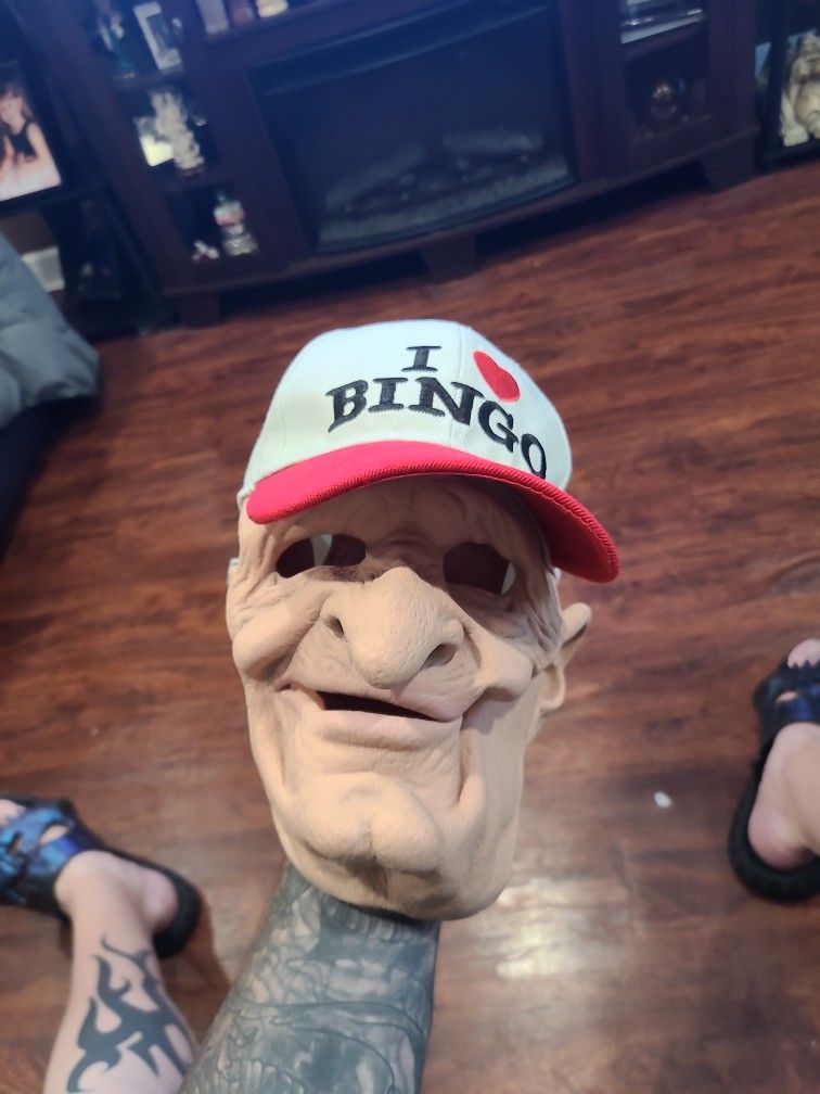 Zagone Studios Be-Nign (B-9), Old Man Mask with Attached "I Love Bingo" Hat