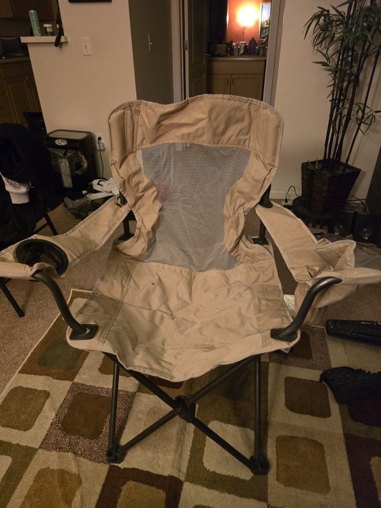 LET ME KNOW HOW MANY YOU NEED!! I HAVE MORE THAN ONE. 40 / EACH Quad Chair Outdoor Lawn Portable Foldable Camping Quad Char With Cup Holder And Storage In Other Chair Arm Heavy Duty Carrying Bag. Holds up to 300 pounds. Very durable, good quality.