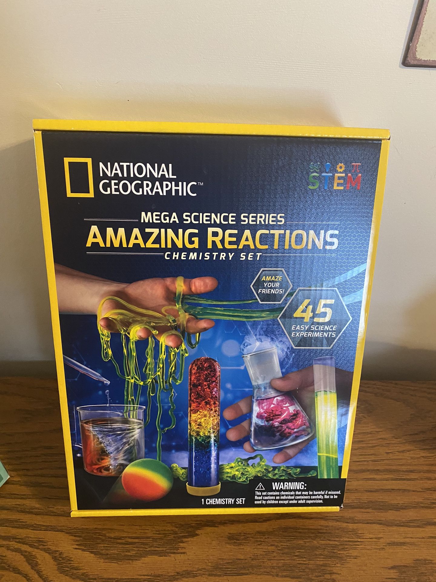 New in box National Geographic Amazing Reactions Chemistry Set. It doesn’t have the age requirement on the box. 45 easy science experiments! The second picture shows you how much it sells for on Amazon-$39.99. Pick up is in Wallingford. Cash only.