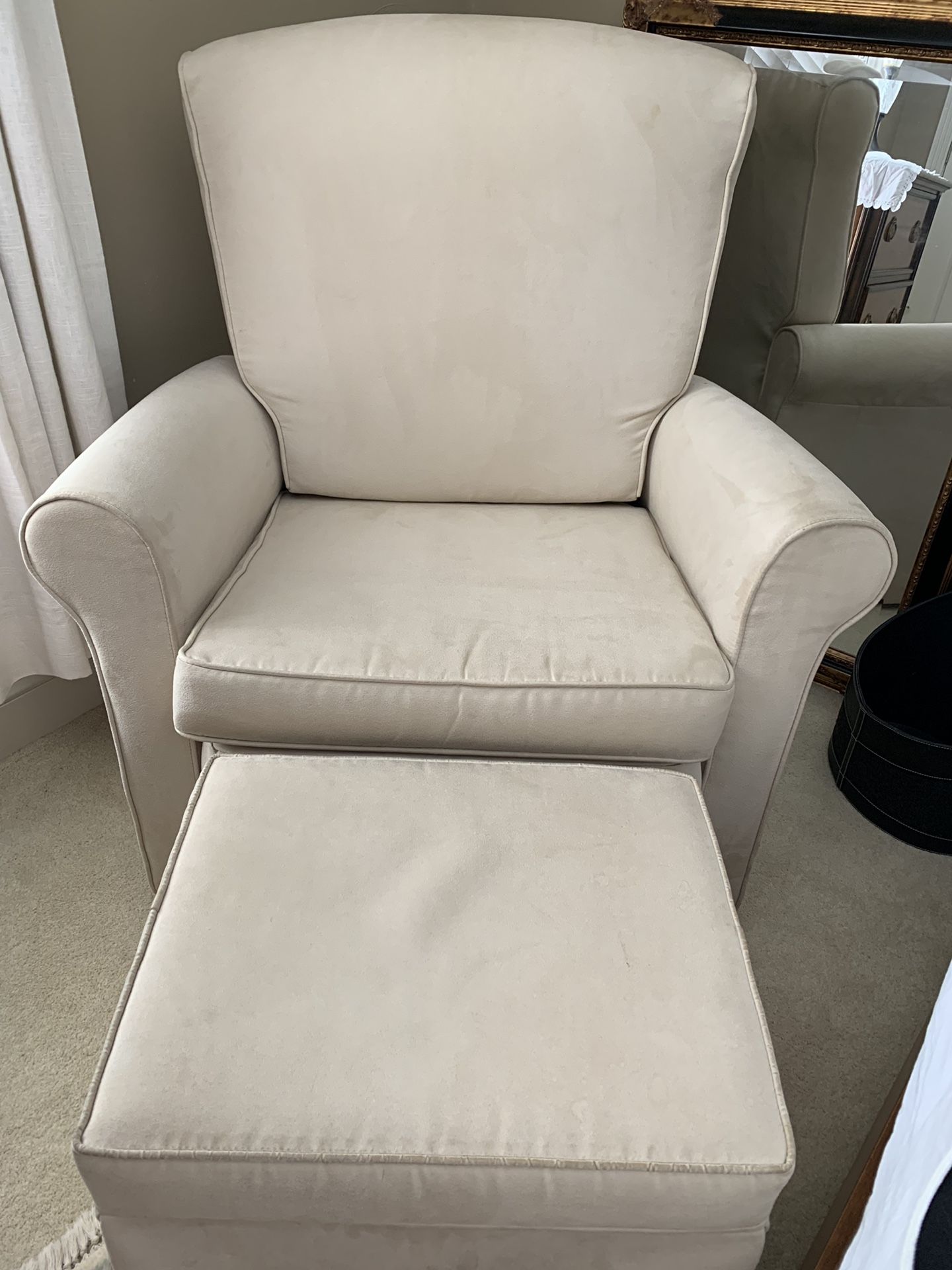 Dutailier microfiber glider and ottoman. The microfiber fabric is very comfy and stain resistant! It is in good used condition. It is perfect for any nursery! Make an offer!