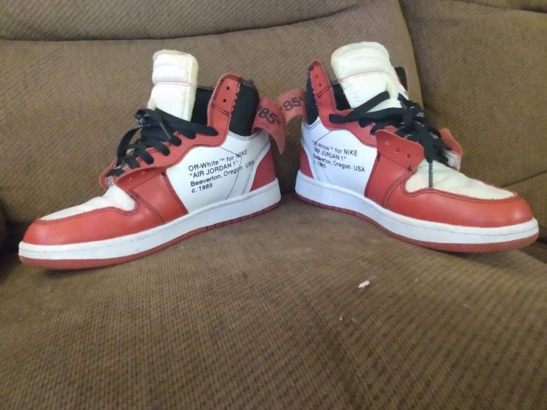 Off white Chicago Jordan 1's Do your research Virgil Obloh, creator and originator of off white as well as head designer of Louis Vuitton mens wear, died this last November. His designs have absolutely sky rocketed. This design specifically I have not found under $6400.00 in og condition and box. you could have a piece of fashion history at under half that for 2000.00 or best offer. In as is condition which is like new size 8 no box.