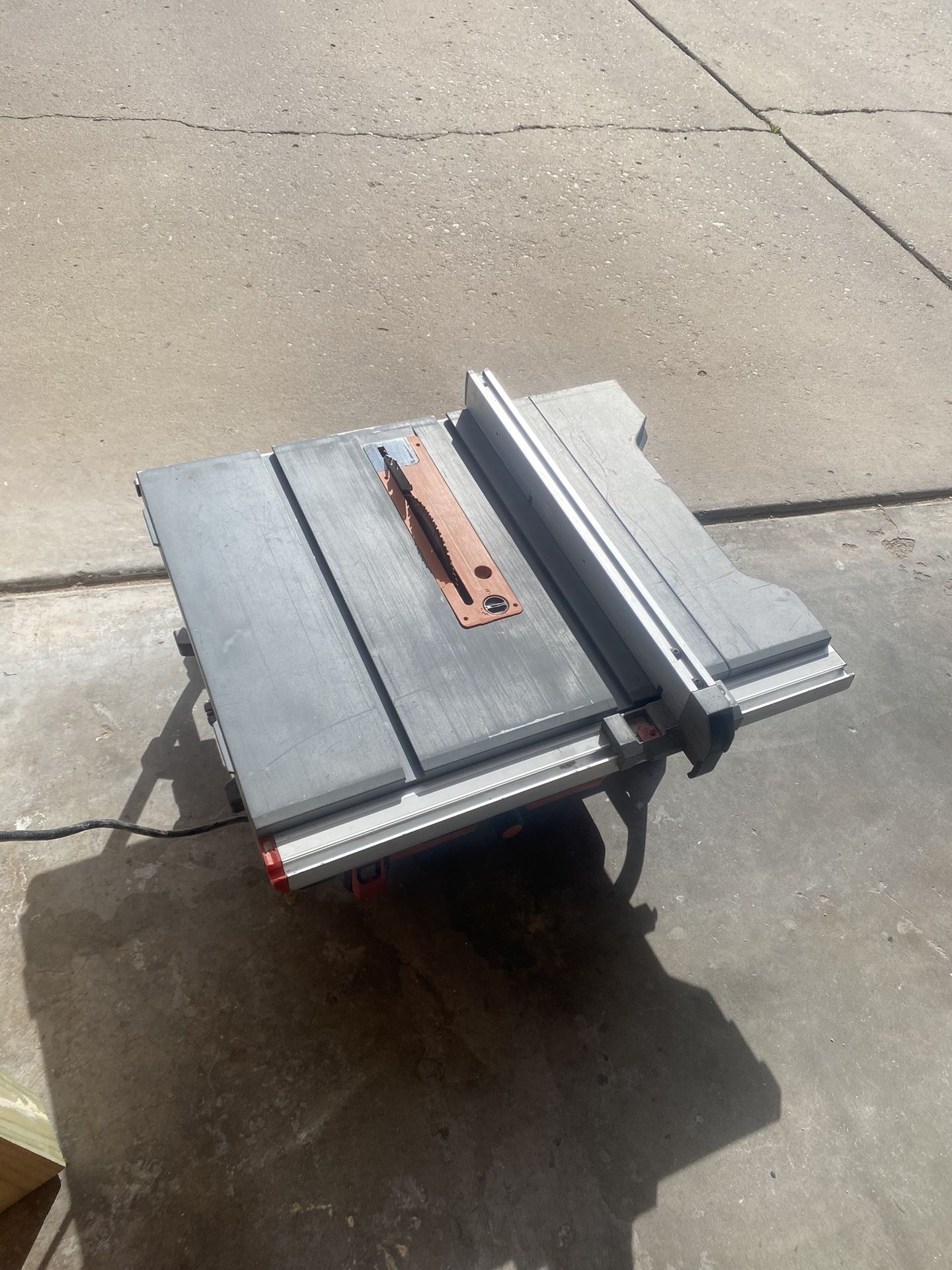 Portable tabletop table saw by Ridgid. 10 inch saw carbide tipped 60T blade. Easy to transport and move around and fit on a small work table or work bench. Used but works well and in solid condition just needs a little cleaning. I don’t have a truck so it will difficult to deliver or meet but it is possible to fit in an empty car or suv truck. Please reach out to organize something or for more details. Thank you!