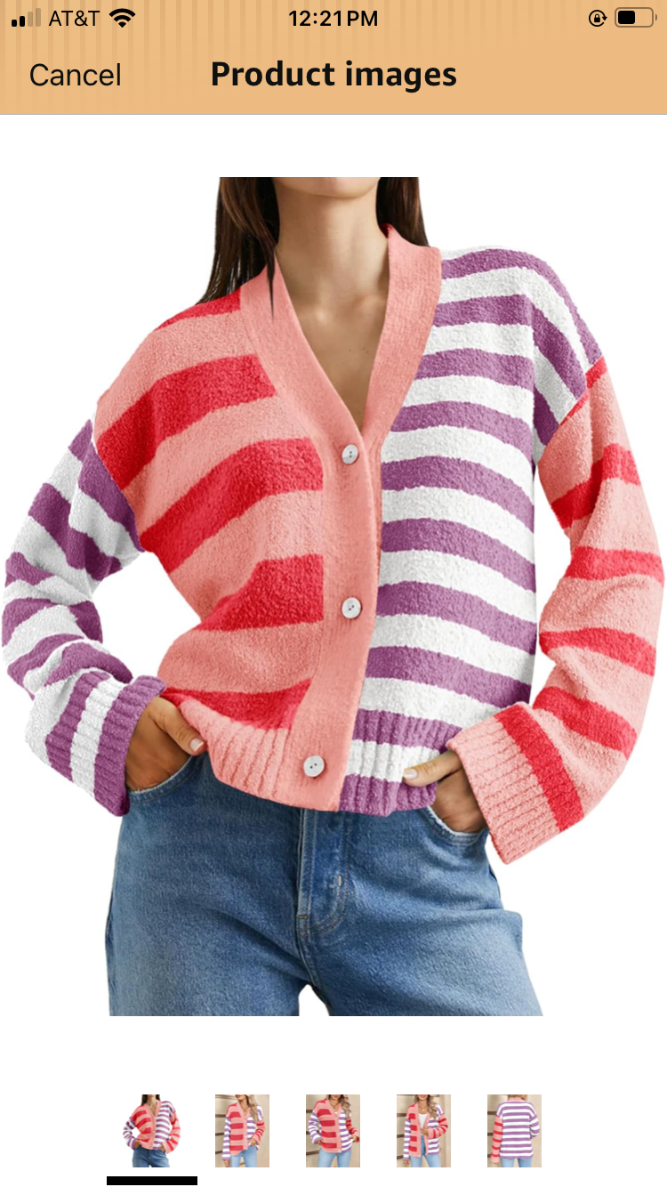 Saodimallsu Womens Striped Cardigan Sweaters V Neck Open Front Button Up Color Block Fuzzy Loose Knit Coats. New, still sealed. The size is not posted on the package but I believe it’s medium. Pickup at Herndon/99 area in Fresno