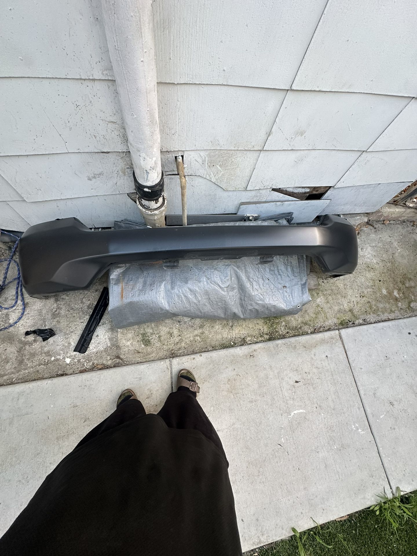 Used bumper small scratch on passenger side no dents no cracks. Was previous bumper on my Chevy truck. I got a new one with fog lights so this one I don’t need. Has also a light bit of plasti dip easily peelable removed most of it. Need it gone too large for storage 100 OBO