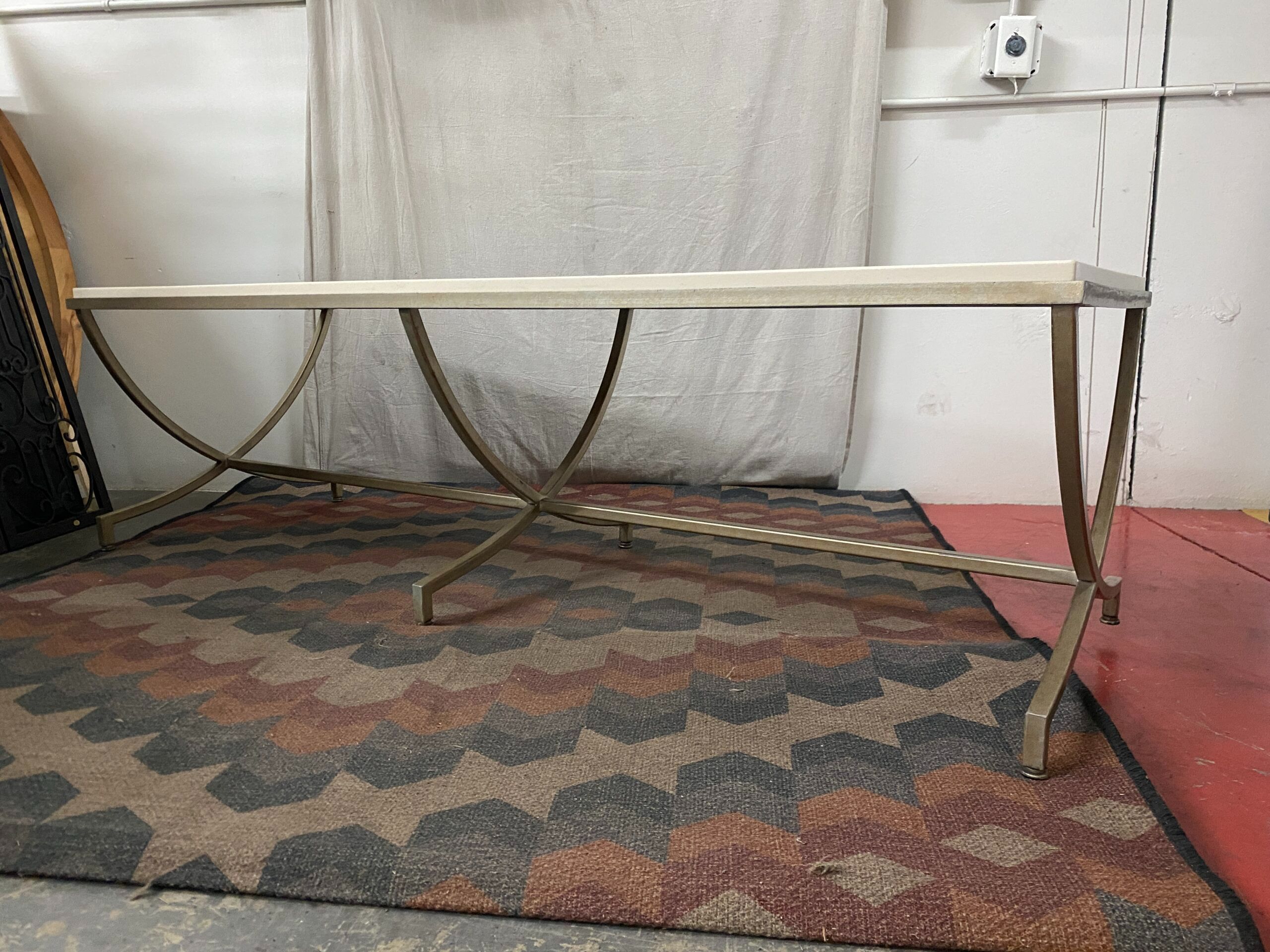 White Stone Top Long Coffee Table w/ Light Metal Base