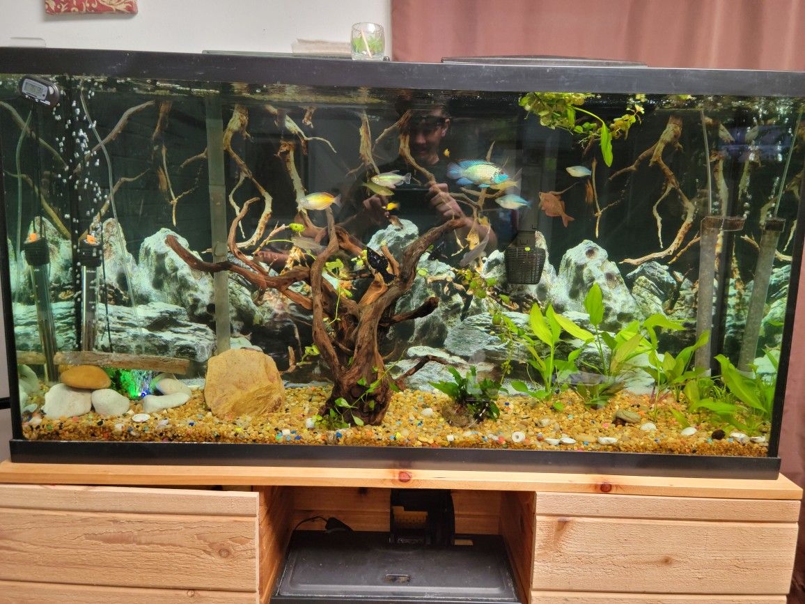 Bow front with stand. It is set up currently and has 3 Chinese algea eaters in it. I would need notice to break it down and buyer can not back out at that point. It doesn't have a lid for it unfortunately. $125 30g tank with lid no stand $60 60g tank with lids $125 55g with lids $100 1 Stand and canopy to go with either the 55 or 60 $125 All "lids" are glass lids. I do have some filters available. Some gravel. Maybe some air pumps. I can build or create ponds.... very relaxing and therapeutic too. I can build stands or tank furniture. Show me what you'd like or something similar and I can build it. Soon I hope to have computer and program to design but currently I don't have that ability. Message me and I'll have you call me or text me. For some reason I don't get all the notifications from offer up I should be getting