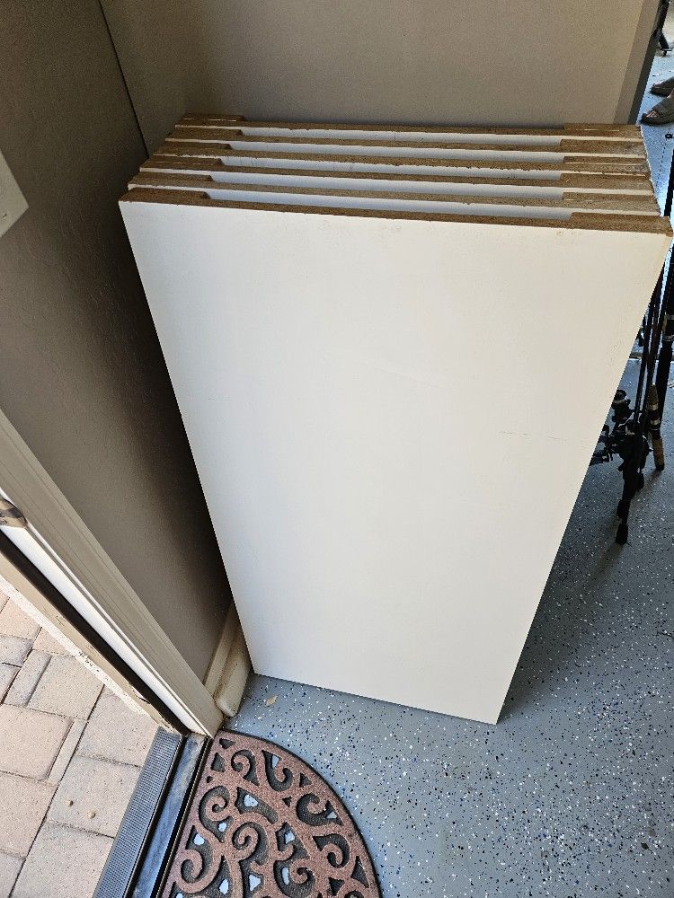 6 shelves, pretty heavy duty. They were inside garage cabinets that were never used. OBO