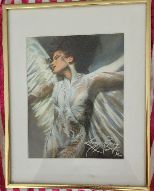 Limited Edition Litho Angel In White Framed. 12" X 14"