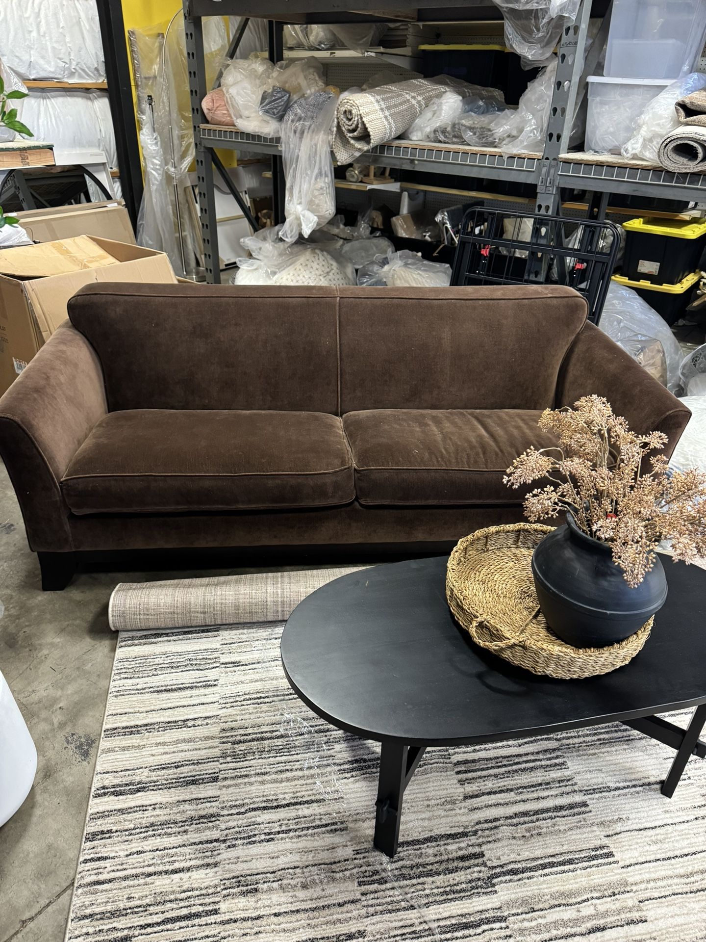 Pottery Barn Velvet Brown Sofa