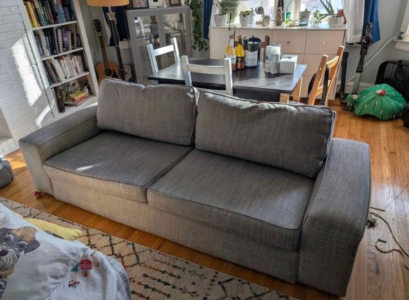 A well loved couch. Asking $225 OBO Newly deep cleaned. MOVING SOON: We are upgrading for a new space. KIVIK IKEA Sofa. Measurements Width: 89 3/4 " Depth: 37 3/8 " Height: 32 5/8 " Seat width: 70 7/8 " Seat depth: 23 5/8 " Seat height: 17 3/4 " Pick up only. Bring help to carry out. Located in Oak Park