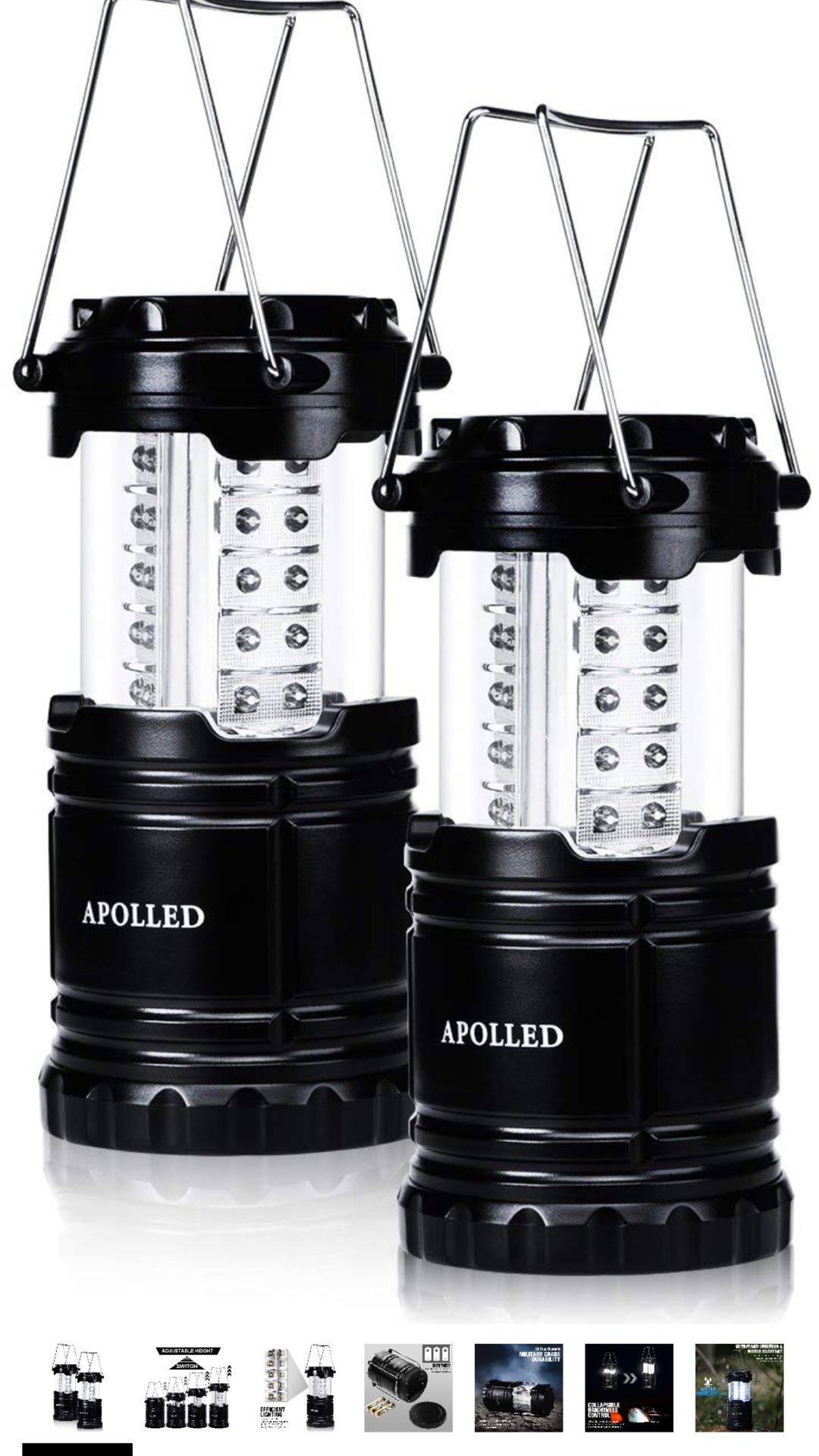 APOLLED Camping Lantern, 30-LED Collapsible Lantern with 6 AA Batteries, Survival Kit for Outdoor Camping, Emergency, Hurricane, Power Outage (Black,
