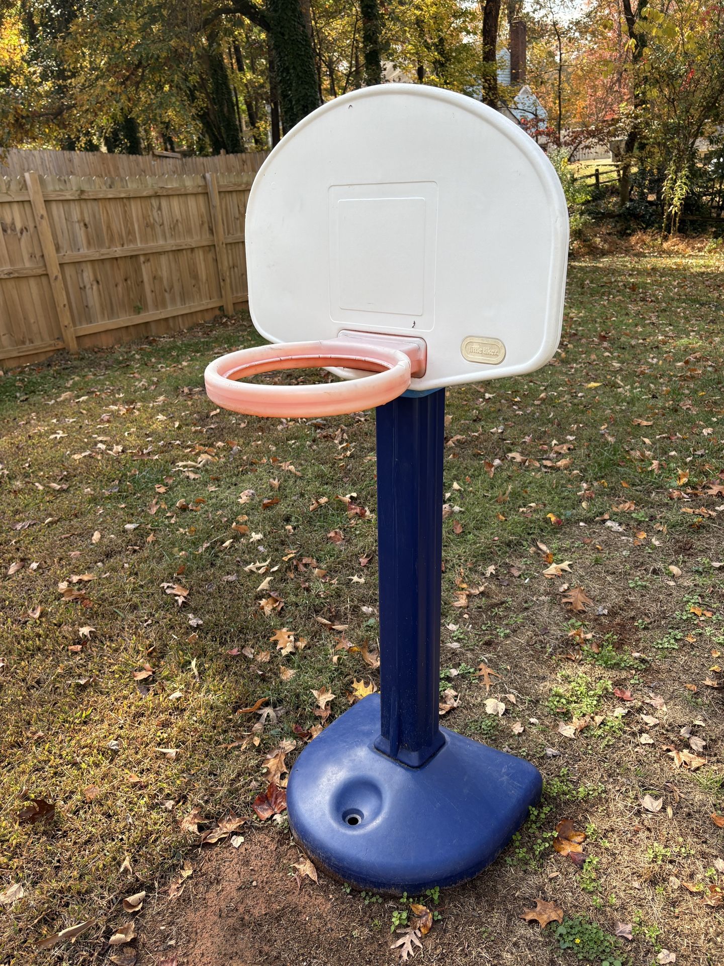 Used but fully functional. Shows some sun fading and normal wear from being outside (see photos). Adjustable height. Good for toddlers and young kids to practice basketball. Pickup only.