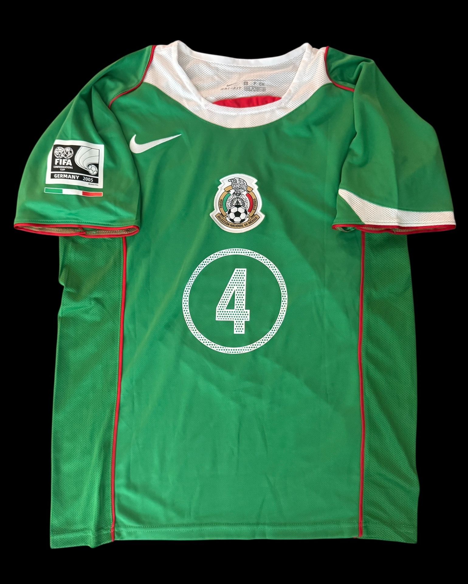 English Description: • Brand New • Regular Fit • Rafa Márquez #4 Mexico Home Jersey • Large, Green • 2006 Confederations Cup Style, Nike Soccer Shirt WASH INSIDE OUT ON DELICATE CYCLE WITH COLD WATER Spanish Description: • Marca Nueva • Corte Regular • Jersey de Local Rafa Márquez #4 México • Talla L, Verde • Estilo Copa Confederaciones 2006, Camiseta de Fútbol Nike LAVAR AL REVÉS EN CICLO DELICADO CON AGUA FRÍA